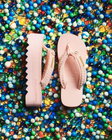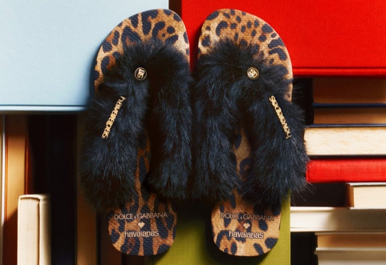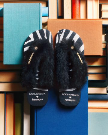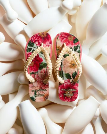 Entre os destaques estão sandálias com plataforma robusta e tiras em macramê, modelos com estampas florais e botânicas feitas à mão, além de versões glamourosas com pele sintética em padrões de leopardo e zebra. Cada par recebe o logo metálico da Havaianas e um pin exclusivo da Dolce & Gabbana, reforçando o caráter colecionável das peças. A coleção celebra o poder de duas marcas icônicas que transformam elementos cotidianos em objetos de desejo.