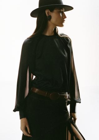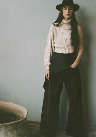 Explorada sob a ótica de sua herança pessoal e cultural, Lorena Saravia constrói um guarda-roupa altamente versátil, incluindo alguns de seus estilos mais desejados. A coleção de 29 peças equilibra a força das silhuetas estruturadas — como a jaqueta jeans e as calças de couro com recortes, best-sellers da marca — com looks noturnos sensuais, incluindo blusas drapeadas e vestidos de costas abertas. Urbana e versátil, a coleção é um tributo inegável ao México, expresso em tecidos de inspiração utilitária, detalhes artesanais e botas cowboy — sem falar na paleta de cores permeada por tons poéticos do deserto.