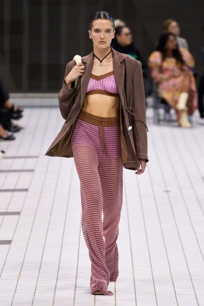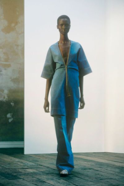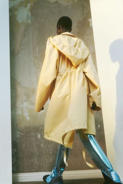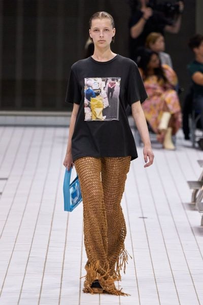 Relativamente emparelhada para Rejina Pyo, nesta temporada a marca mostrou camisetas desleixadas e conjuntos de malha ao lado das silhuetas estruturadas usuais e tecidos mais rígidos. O esquema de cores centrado em tons contrastantes de laranja e verde, contra uma base de marrom e bege.