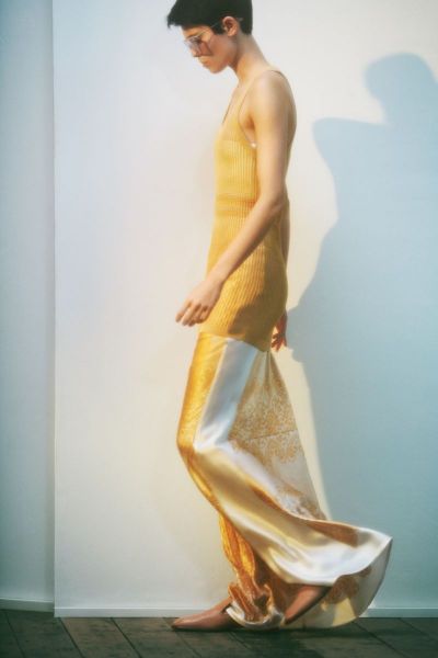 Mais uma vez, Molly Goddard – a mestre do smocking – conseguiu revigorar a silhueta da boneca em sua coleção Primavera/Verão 2022. O tule arejado foi contrastado com malhas pesadas em um esquema de cores maravilhosamente versátil de cáqui discreto, branco e marrom com pops vigorosos de laranja neon e rosa.