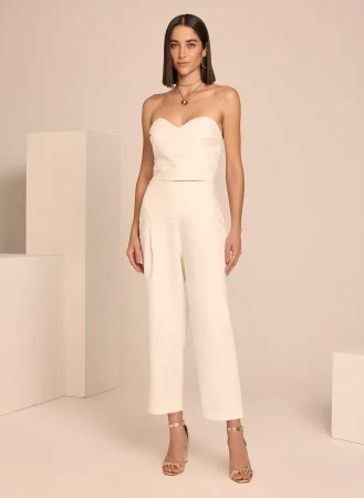 Conjuntos de blazer leve e pantalona ampla mostram que a alfaiataria é bem-vinda no verão. Tecidos como linho, viscose e crepe garantem frescor, enquanto a paleta clara reforça o visual clean e moderno para noites formais no resort.