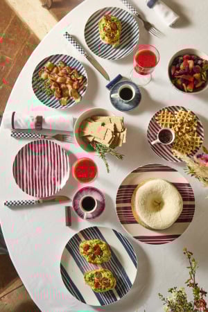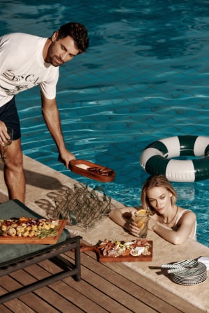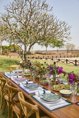 A coleção exclusiva de homewear dá o tom à colaboração, com peças desenvolvidas especialmente para o encontro entre as marcas. O mix & match lidera a condução criativa da coleção, permitindo o uso da mesma louça para diferentes situações, sejam elas mais rústicas ou elegantes. Desafiando um universo cheio de normas e rigidez, a Casa Costa encoraja a mistura de materiais de forma surpreendente e criativa para criar múltiplas combinações. As peças da linha Countryside têm a louça em porcelana portuguesa como destaque, brincando com listras e cores de forma moderna e atual em pratos, bowls e xícaras. Os tons verde,  azul e ameixa colorem a mesa de forma elegante e convidam à mistura de cores. Complementos de mesa são apresentados na mesma paleta: jogos americanos, guardanapos, talheres, entre outros acessórios. Já a linha Pool Club explora o lado mais rústico e descontraído da coleção, perfeita para ser usada em um churrasco ou à beira da piscina. Dando ênfase à louça em cerâmica portuguesa e a acessórios especiais – copos e taças mais robustos, além de tábuas de churrasco, de queijo e gamelas de madeira feitas à mão, no Brasil – as peças valorizam formatos mais orgânicos sem perder a sofisticação. Sempre prezando por desenvolver produtos versáteis e multifuncionais, a coleção se encaixa naturalmente nas casas e na vida de suas clientes – cidade, campo ou praia.