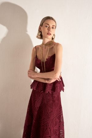 Dentre os tecidos escolhidos para destacar a riqueza da coleção, está um jacquard exclusivo, com uma estética barroca moderna; o ‘Kumari’, um material de fibra natural, que dá aspecto elegante e encorpado para alfaiataria e peças minimalistas; o ‘Satin Silk’, um tecido 100% seda, de toque acetinado, com um caimento leve para produções sofisticadas e minimalistas; e a ‘Renda Margot’, um material que leva cordonê e bordados de paetês, promovendo um efeito acqua singular, perfeito para outfits celebrativos.