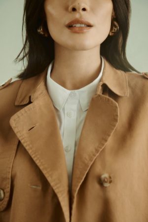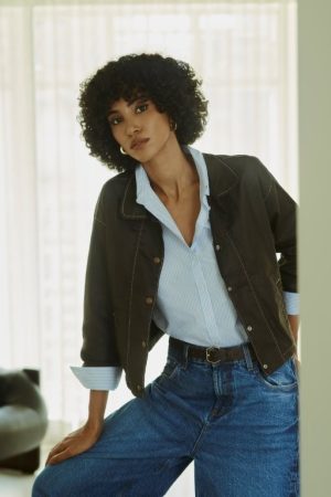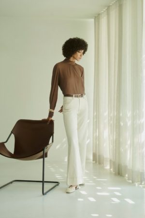 Para os amantes do jeans 100% algodão, a coleção também traz opções com acabamento tradicional e lavagem azul médio, um tom atemporal que se mantém relevante entre as trocas de estação. Já a sarja marrom — a cor-chave do momento — aparece em peças encorpadas com corte alfaiatado, perfeitas para criar composições que transitam entre o casual e o urbano chic.