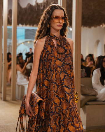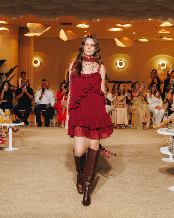 A passarela exibiu looks que capturam a essência da feminilidade, característica marcante da Skazi, e destacou materiais nobres e os acabamentos feitos à mão – elementos que conferem sofisticação e autenticidade às peças. Complementando as produções, foram selecionados os calçados da Uza Shoes, com suas elegantes botas e sandálias, e os acessórios assinados por Nádia Gimenes, que trouxe peças contemporâneas e sofisticadas, alinhadas ao conceito da coleção.