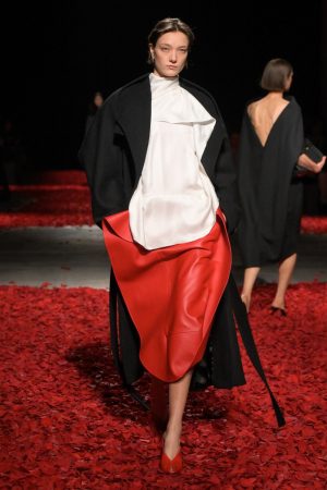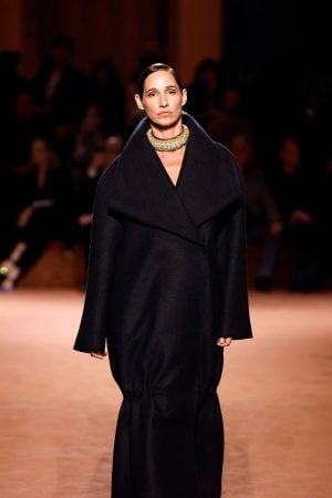 As silhuetas se destacaram pela sua simplicidade impecável. As peças, muitas delas oversized, mostravam a beleza do tecido sem distrações, formas puras, paletas restritas e uma atmosfera de despojamento refinado.