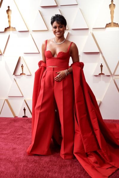 Ariana DeBose, atriz que recebeu a estatueta do Oscar pelo papel de Anita em Amor Sublime Amor, usou um look Valentino de alta-costura no red carpet da premiação.