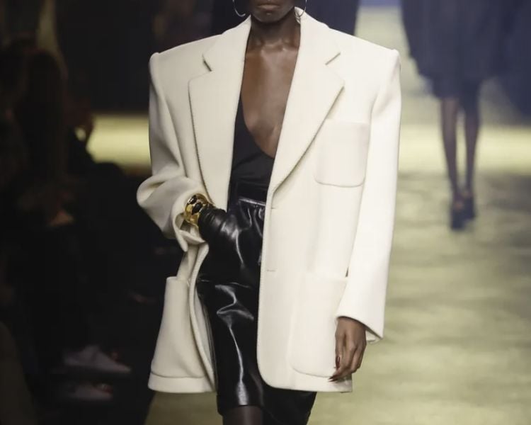 Acredito que a alfaiataria. Marcas como Saint Laurent trouxeram coleções completas, unindo o simples ao sofisticado com uma alfaiataria repaginada de maneira feminina e elegante. A alfaiataria oversized contrastando com looks mais fluidos compostos por saias e blusas de cetim mostra que a feminilidade e o belo estão de volta. Foi um prazer ver de pertinho, e até vestir algumas peças, de roupas com cortes precisos, acamamentos e caimentos impecáveis.
