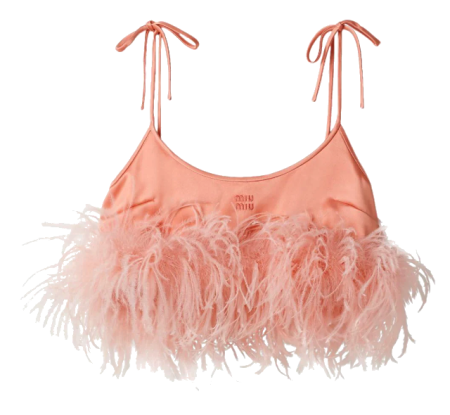 A peça tem o toque refinado do cetim, com acabamento sofisticado com penas, além do logotipo bordado que adiciona um toque exclusivo a esta peça. Onde encontrar? www.miumiu.com.br Preço: R$ 14.000,00.