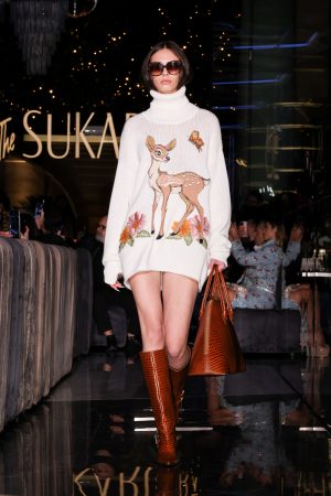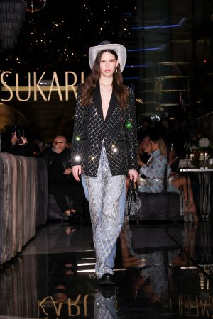 A coleção explora a Cowboy Couture, equilibrando casualidade e ousadia. O jeans surge como destaque, em combinações com camisas oversized e casacos marcantes. A estética country chic ganha força com tons vibrantes, alfaiataria precisa e a icônica bandeira americana retrô. À noite, a marca aposta em vestidos sensuais e trajes masculinos sofisticados em tons escuros.