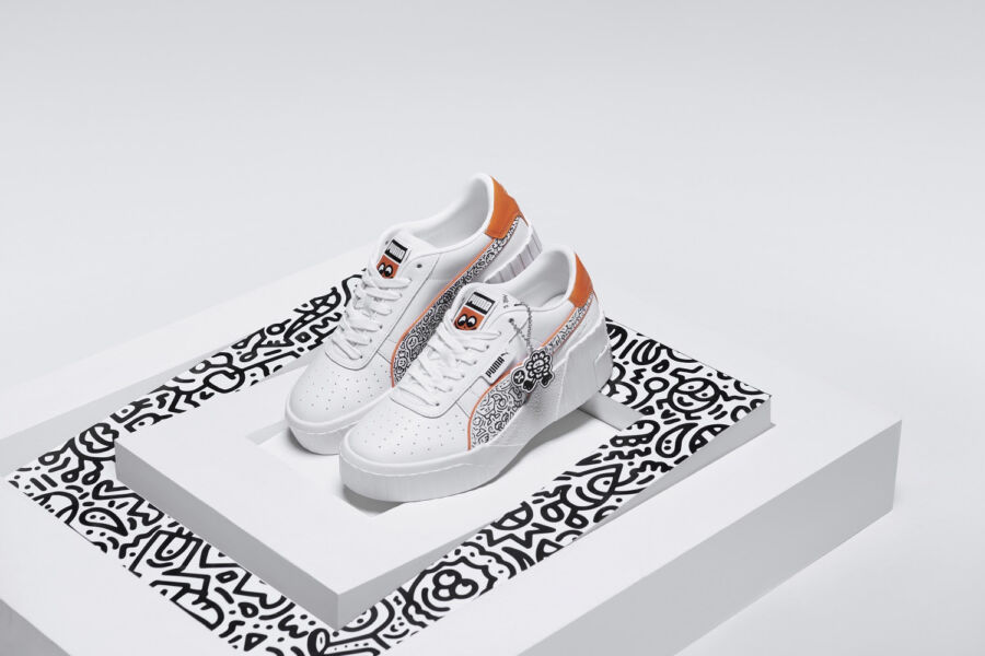 As silhuetas da Puma: RS-2K, Cali Wedge e Mile Rider recebem um novo visual divertido para a coleção. O RS-2K X Mr.Doodle apresenta enfeites como laços assimétricos e rabiscos na sola intermédia. Já o Mile Rider X Mr.Doodle apresenta uma malha esportiva com sobreposições coloridas e gráficos de doodles na entressola.