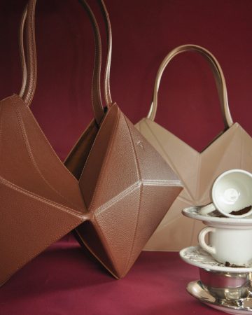 O conceito do “dobrar” se traduz em três possibilidades de modelagens, a partir da mesma peça. Através dessas dobraduras, a bolsa apresenta três formatos totalmente diferentes para usar: um no modelo sacola, com uma construção ampla, o segundo no modelo sacola com fecho por botão, e uma handbag, fechada e menor separada em duas partes. Em dois tamanhos diferentes – normal e large -, o item aparece em cinco cores atemporais, com foco nos tons neutros como preto, off white, cinza, castanho e bege claro.