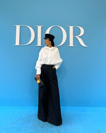 O look inusitado de Silvia Braz chamou a atenção dos fãs e críticos de moda na manhã da última terça-feira (24) no desfile da Dior durante a Paris Fashion Week.