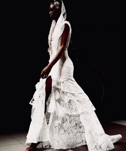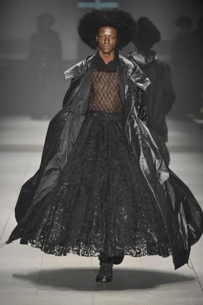 O convite do desfile já dizia tudo: a recomendação era que todos fossem de preto. A moda se transformou em um cenário fúnebre, e João Pimenta retratou a pandemia em roupas pesadas, com várias camadas e nuances.