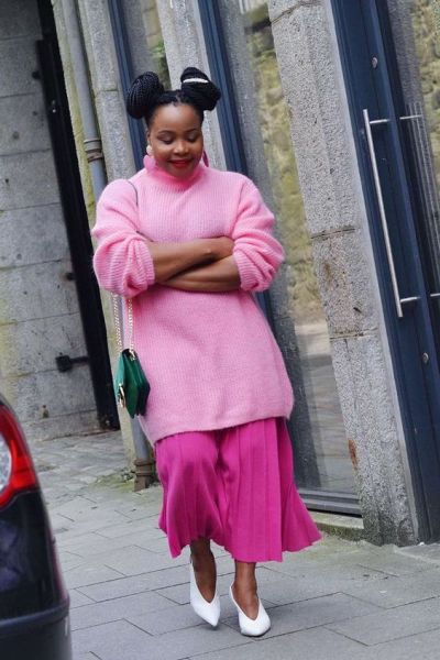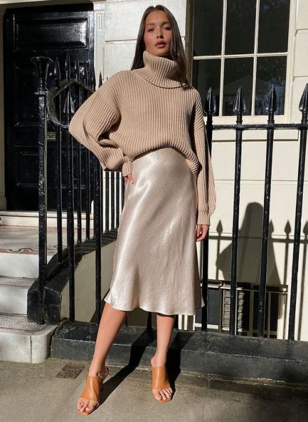 A versatilidade do tricô permite que ele esteja até nas produções mais elaboradas do dia ou da noite. Aposte no tamanho oversized da peça para usar com saias midi ou vestidos de mesmo comprimento, combinado com salto scarpin, acessórios e bolsa para finalizar a composição. A dica super detalhista para dar ainda mais elegância é escolher um tecido de seda para a parte inferior do look e a gola alta no tricô.