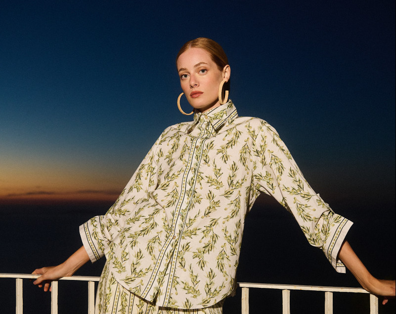 A estampa floral verde oferece frescor e uma sensação de proximidade com a natureza. Carol comenta que “tons de verde remetem à tranquilidade e à renovação, fazendo dessas peças uma ótima escolha para momentos que exigem elegância e sobriedade. Na minha opinião, a melhor maneira de combinar peças nesta paleta é apostar em conjuntos da mesma padronagem ou peças únicas, como um vestido curto soltinho”.