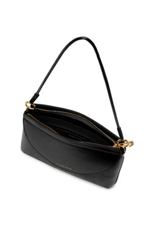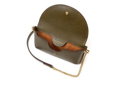 Já a Alby Lille se destaca pela alça de corrente banhada em ouro, removível, que também permite usá-la como clutch ou carteira de mão. Seu design compacto a torna ideal para quem busca uma peça leve, sem carregar peso extra. Com 19 x 10 cm, o modelo possui forro em suede, que protege itens pessoais, comportando celular e cartões, mas mantendo organização e funcionalidade com uma estética refinada.