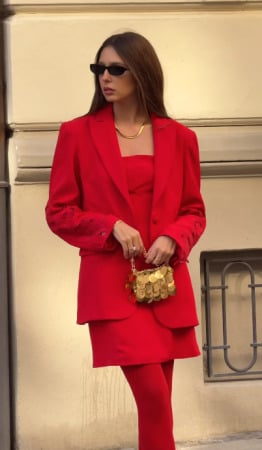 Já se você quer mergulhar na trend, um look monocromático é a melhor pedida. Essa opção vai atrair todos os olhares e é indiscutível ser uma combinação fashion com muita personalidade. Seja por meio de conjuntos ou peças únicas, aqui a ideia é finalizar acessórios também em vermelho, como uma meia-calça colorida, sapatos e bolsas. Com o mesmo tom ou com diferentes nuances de uma mesma cor, o monocromático sempre será uma opção super fashionista!