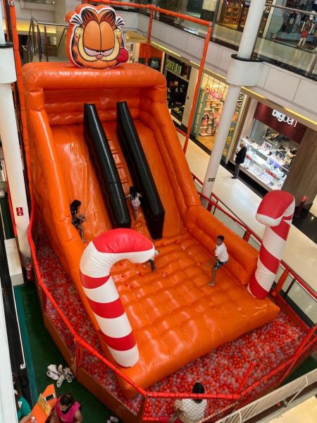 O Garfield Mania, uma arena temática do gato mais famoso do mundo e apaixonado por lasanha, fica até o dia 5 de março, no piso L2. As crianças poderão se divertir em um escorregador inflável com mais de 6 metros de altura, além de uma piscina de bolinhas.