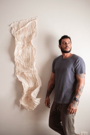 A potência da vida e a constante busca pela liberdade artística são o combustível para o artista e designer têxtil. Com forte inspiração em cinematografia, arquitetura modernista e paisagismo, ele cria artesanalmente tapeçarias únicas feitas com matérias-primas naturais, fios e fibras, como a lã e o sisal. Todo o processo criativo é resultado de sua experiência de vida e formação em cinema, cenografia e design de interiores. Sensoriais e tridimensionais, suas peças instigam o olhar pelo equilíbrio estético das formas e padrões, e estimulam o toque através dos diferentes volumes e texturas. Alex propõe o puro design autoral ao explorar livremente as cores, o jogo de luzes e sombras, espaços vazios e cheios, elementos orgânicos e linhas geométricas. Com atenção aos processos e técnicas, incorpora a biomimética para valorizar as formas ancestrais, fluidas e sustentáveis da natureza. Além disso, aplica conceitos de morfologia urbana, atribuindo vida e movimento aos seus desenhos.