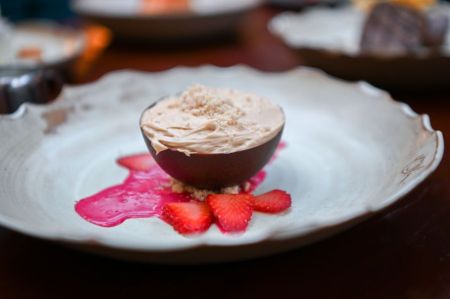 Por fim, as opções de sobremesa são o bolo gelado de coco com whisky Jack Honey ou a esfera de chocolate com morango em licor, creme de pistache e calda de lavanda.