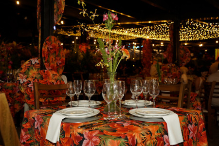 Já na entrada, a decoração fina destacou a brasilidade, com estampas tropicais e flores exóticas, que transformaram o espaço em um grande jardim.