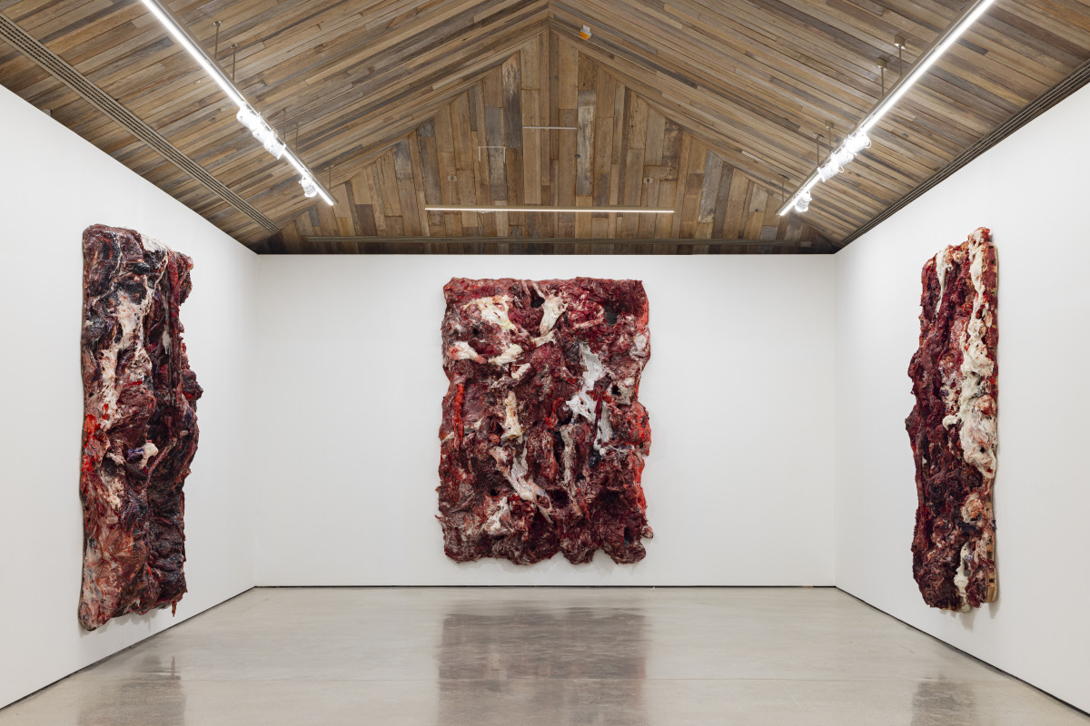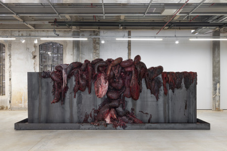 São quatro mil metros quadrados de extensão e 19 obras emblemáticas – muitas delas exibidas pela primeira vez no Brasil. A exposição reúne alguns dos trabalhos mais viscerais do artista, como “Blinded by Eyes, Butchered by Birth” (2024), uma obra inédita criada especificamente para a Casa Bradesco. Trata-se de um inflável de grandes proporções que tensiona o edifício por todos os cantos, evocando uma relação com a inflamação concentrada em um gigantesco órgão, que pulsa e domina o espaço. A obra representa a fragilidade essencial da existência, já que o que a mantém viva é uma pulsação constante, tornando-a viva e dominante.