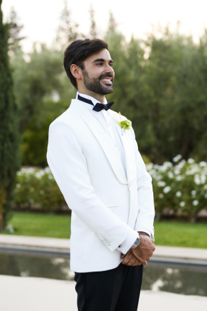Em tons claros, o paletó combinou perfeitamente com o visual da noiva.