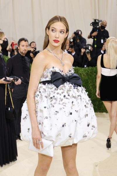 A embaixadora da marca, Lily Aldridge, usou mais de 33 quilates de diamantes BVLGARI para o evento deste ano. A modelo combinou com brincos e anéis de alta joalheria e uma pulseira Serpenti Viper, tudo em ouro branco e diamantes.