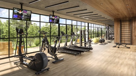 A área de uso comum abriga ainda uma lounge externo, que integra o salão à Praça da Fonte, a um playground e à academia. A academia, que será entregue equipada e decorada, também tem uma área externa para alongamento e um deck mobiliado para relaxamento e meditação.