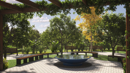 Todos os espaços foram projetados de forma integrada, potencializado seu uso para todos os momentos do dia. A Praça da Fonte convida ao convívio e à leitura, da mesma forma que os playgrounds complementam a quadra esportiva, a academia e o salão de festas.