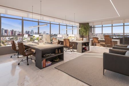 “O edifício possui dois subsolos, térreo com pé direito duplo, seis pavimentos e um charmoso rooftop. São apenas 60 conjuntos comerciais de alto padrão, com unidades a partir de 60m² que podem chegar em até 670m² em um único andar, além de mais 123 vagas de garagens entre privativas e rotativas”, explica Felipe Fração, sócio diretor da JHF.