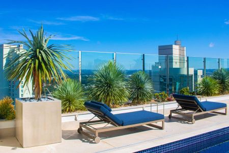 Outra característica trazida pela construtora dentro da valorização de imóveis de médio e alto padrão e da qualidade de vida é o rooftop, um conceito de terraço compartilhado que surgiu em Nova York, nos Estados Unidos, e tem se espalhado pelo Brasil. A estrutura oferece jardim, piscina adulta e infantil aquecidas e área de churrasqueira com utensílios de cozinha. “Todo esse espaço se complementa com uma vista para a Serra do Mar e para os demais bairros de Curitiba. Isso potencializa o bem-estar para quem vai viver no edifício”, diz o arquiteto Luiz Mori Neto, responsável pelo projeto arquitetônico do empreendimento.