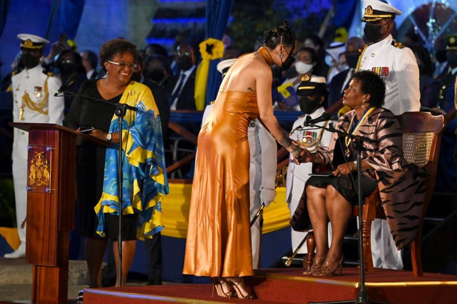 “Que você continue a brilhar como um diamante”, disse a primeira-ministra do país, Mia Mottley, em uma cerimônia de posse da cantora pop, ícone da moda e empresária, em referência a seu sucesso de 2012, Diamonds.