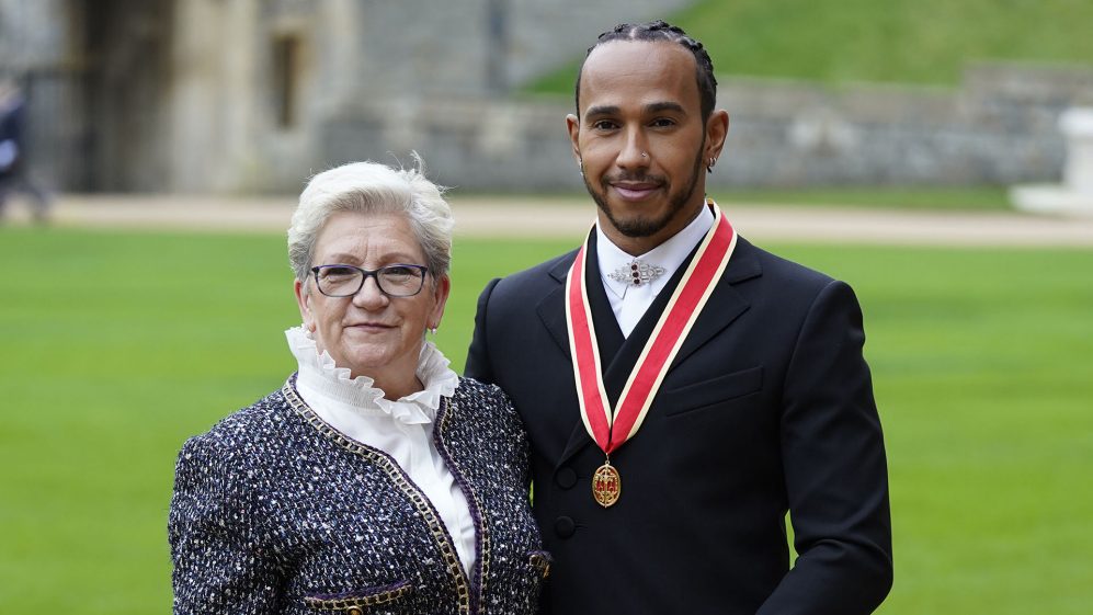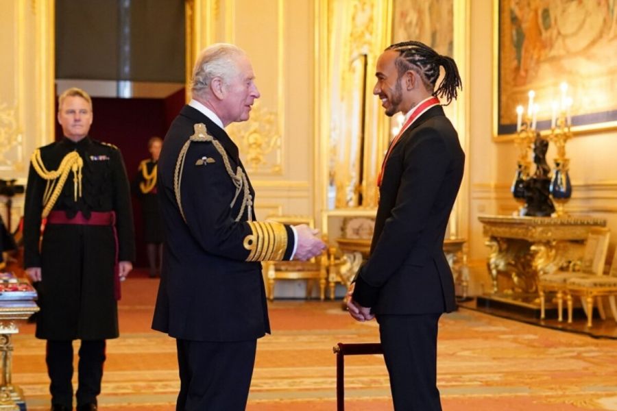 Hamilton apareceu no Castelo de Windsor ao lado de sua mãe Carmen, que viu seu filho se tornar o quarto piloto de Fórmula 1 da história a ser nomeado Cavaleiro, seguido por Sir Jackie Stewart, Sir Stirling Moss e Sir Jack Brabham.