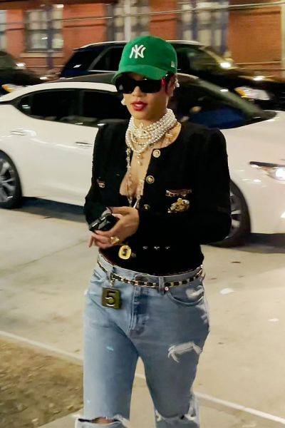 Para pegar alguns lanches noturnos, Rihanna foi para um Whole Foods em Nova York usando Chanel. A atriz de 33 anos combinou a jaqueta de tweed Chanel e o cinto dourado com colares de pérolas Vivienne Westwood, um boné do New York Yankees e jeans desgastados.