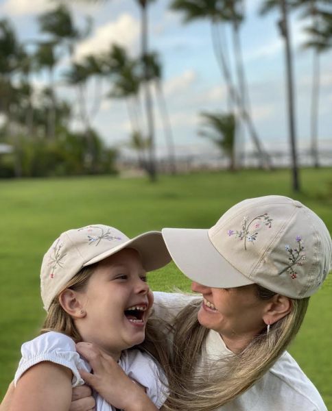 Carla Mussi Kuss com a pequena Luísa, curtindo os dias de calor na Bahia. Na foto, elas usam bonés da Giardino Fatto a Mano para o 2Get Sale Shopping.