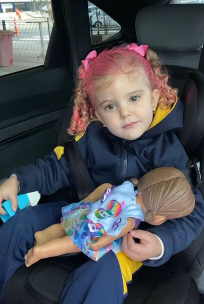 Beatriz Lacerda pintou o cabelo de rosa para ir ao Dia do Cabelo Maluco da escola.