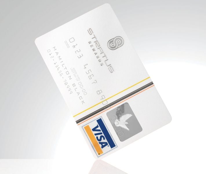 Um cartão de luxo branco. Diferentemente dos outros cartões, que claramente têm a preferência pela cor preta, o Stratus Rewards Visa Card é conhecido como o “White Card”. Com uma pesada taxa anual, só podem ser titulares do cartão clientes que forem convidados. Assim como os outros, a adesão oferece diversas vantagens, como concierge pessoal à sua disposição.