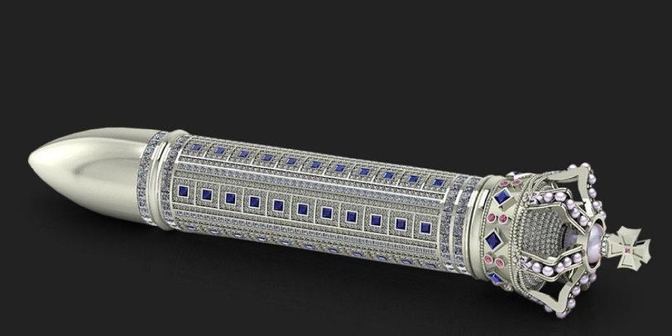 A obra do designer australiano Colin Burn ficou mundialmente conhecida como o “vibrador de um milhão de dólares”. A expansiva peça foi coberta com mais de 2 mil diamantes tradicionais e também contém raros diamantes rosas e safiras azuis. Os materiais da primeira versão foram doados por joalheiros que apoiaram a ação de Burn.