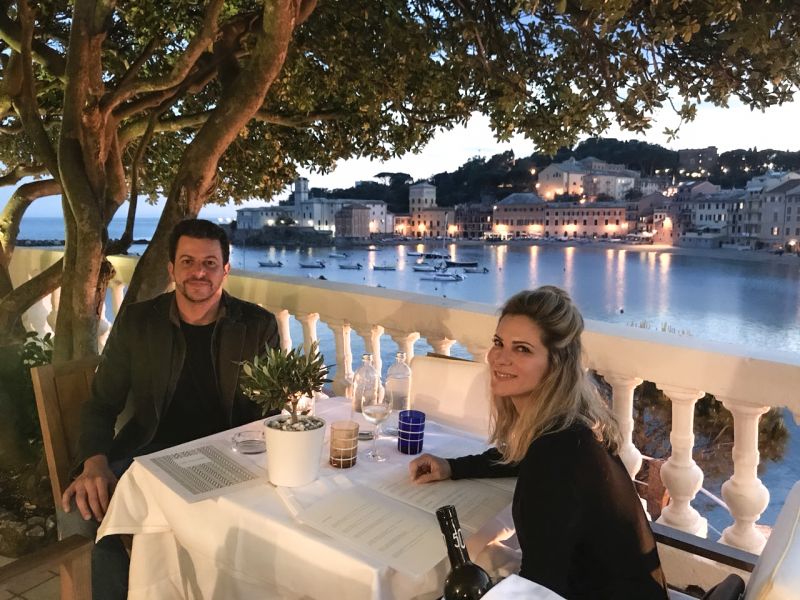 Sem recorrer ao Booking, perguntamos o preço da diária direto no lobby, como antigamente. Tinha vaga, entramos. Depois de um bom banho, perguntamos na recepção qual seria o melhor restaurante para jantar naquela pequena cidade. “Vocês têm que ir ao hotel Helvetia”, disse o recepcionista. Pausa. Aqui, de novo, abrimos mão de aplicativos de buscas. O cara disse: “vinte minutinhos a pé, vocês chegam lá”. Cruzamos o centro velho da cidade com cadeiras de bares e restaurantes espalhadas pela calçada até dar de frente para uma baía cercada por lindas construções antigas, coloridas em terracota, e barquinhos de pescadores balançando sobre a água. Lá na ponta, imponente sobre a rocha sul da baía, avistamos um hotel branco: era o Helvetia. Tiramos os sapatos, caminhamos pela areia fofa e molhamos os pés na água. Escolhemos uma mesa em área aberta “com vista para o horizonte” e com as luzes de Sestri Levante refletindo até se perder no infinito. Entrada, prato principal e sobremesa. Um vinho. Outro vinho.