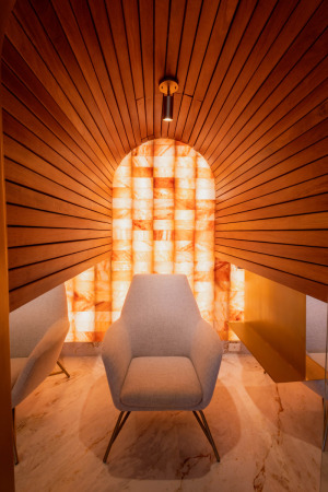 Ao entrar no SPA, cada pessoa é levada a um universo de exclusividade, onde cada detalhe foi cuidadosamente pensado para proporcionar uma experiência única de relaxamento e autocuidado. Ao atravessar esse portal simbólico da parede com sal da Himalaia, os clientes são transportados para um ambiente onde corpo e mente encontram harmonia, inspirados pela tradição e pela excelência que guiam o Gründler SPA.