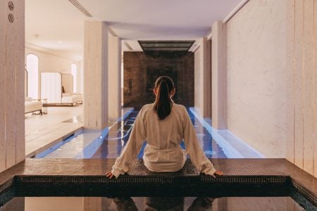 O circuito de bem-estar inclui uma piscina coberta rodeada de mármore, sauna, hammam, duchas sensoriais e tratamentos faciais e corporais com Carita, marca pioneira em cosméticos de alta costura, lançada em 1945. Iluminação suave, linhas minimalistas e atendimento personalizado transformam cada sessão em muito mais do que uma pausa: é uma redescoberta da elegância de se sentir bem.