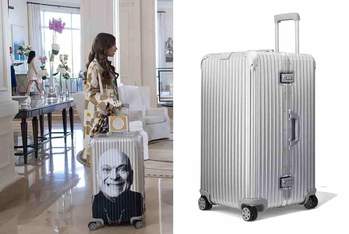 A mala é da marca alemã Rimowa, conhecida por suas bagagens luxuosas feitas de alumínio. Com o estilo e a funcionalidade da marca, não é surpresa que as malas Rimowa tenham sido destaque de ‘Emily em Paris’. A personagem principal, interpretada por Lily Collins, usouom duas das malas de alumínio Original Trunk XL na estreia da segunda temporada da série.
